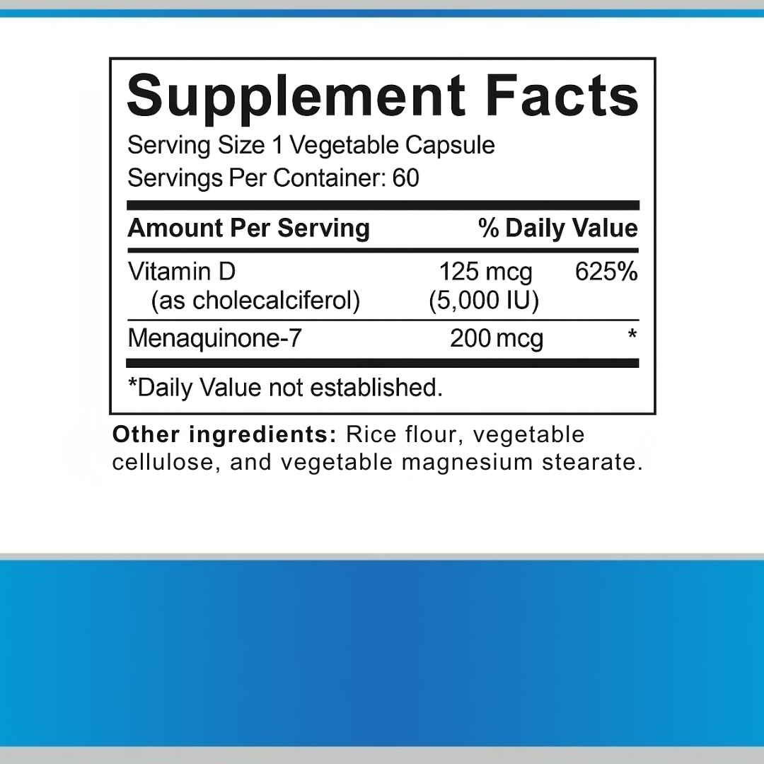 This supplement is a synergistic combination of Vitamin D3 and K2, crucial for maintaining bone health and ensuring proper calcium utilization in the body.
